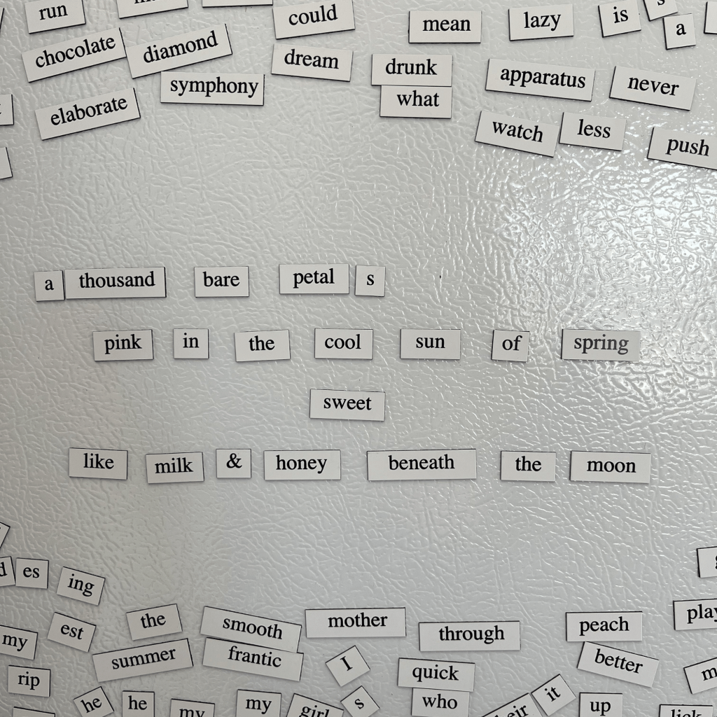 a thousand bare petals / pink in the cool sun of spring / sweet / like milk & honey beneath the moon